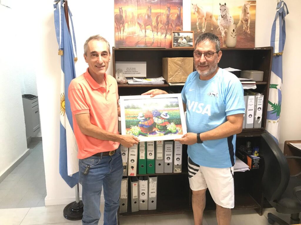 De regreso al Juzgado me obsequio una pintura como recuerdo, hablamos del proyecto «los caminos del sur de la justicia de paz», compartió gustoso la foto con la bandera de JuFePaz que estuvo en OEA y empezó a ser parte también de una historia de juezas y jueces de enormes valores y principios con un rol social fundamental en el lugar del territorio que le toque que desde esta página nos pone orgullosos poder difundir.