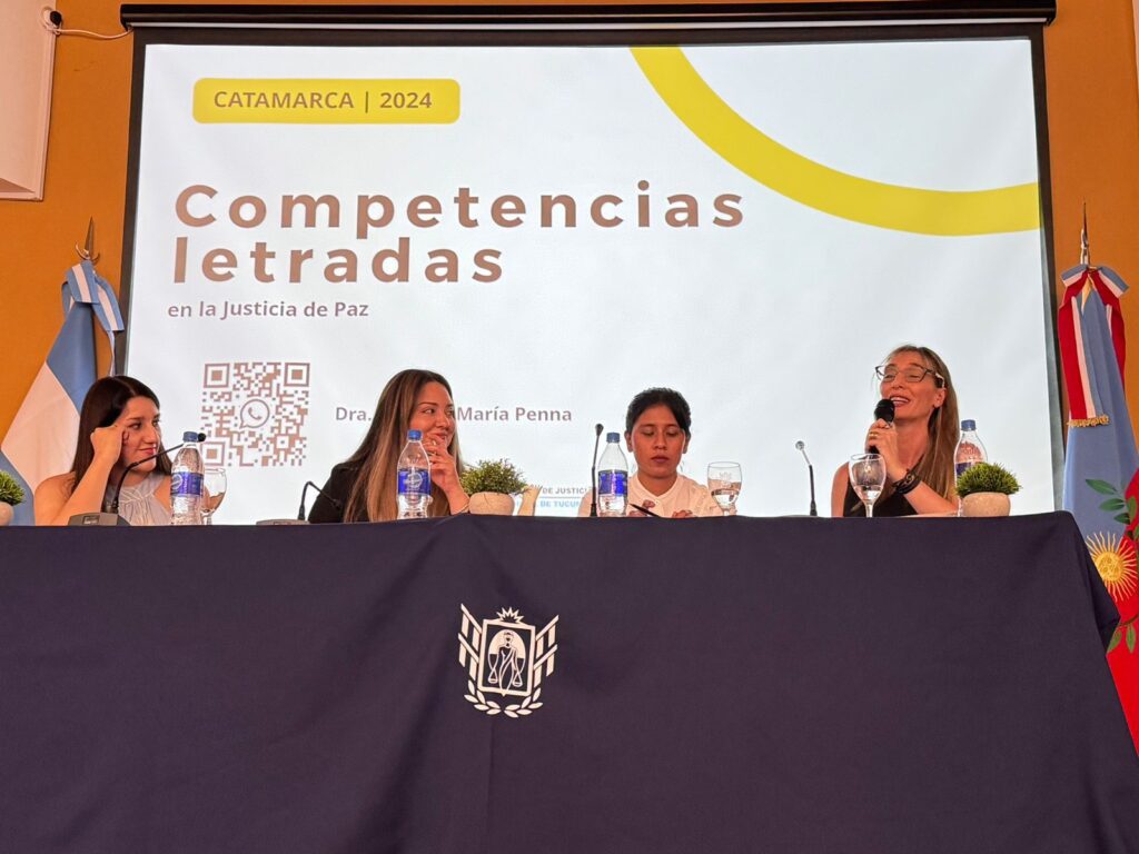 Con la participación de la Justicia de Paz de nuestra provincia, durante el 28 y 29 de noviembre pasado se llevó a cabo el “I° Taller de Juezas y Jueces de Paz de Catamarca”, en la localidad de Tinogasta. Este evento tuvo como objetivo compartir experiencias y fortalecer herramientas para mejorar el servicio de Justicia en temas clave como la violencia familiar, los conflictos posesorios y las tareas notariales. En representación de Tucumán, participaron como expositores destacados la Jueza de Paz de Aguilares- Dra. Beatriz Pelufo-; la Jueza de Paz de Yerba Buena -Dra. Josefina Penna-; la Jueza de Paz de Trancas -Dra. Marina Castro- ; y el Dr. Evaristo Paz Uriburu, del Equipo de Apoyo de la Corte a Justicia de Paz.