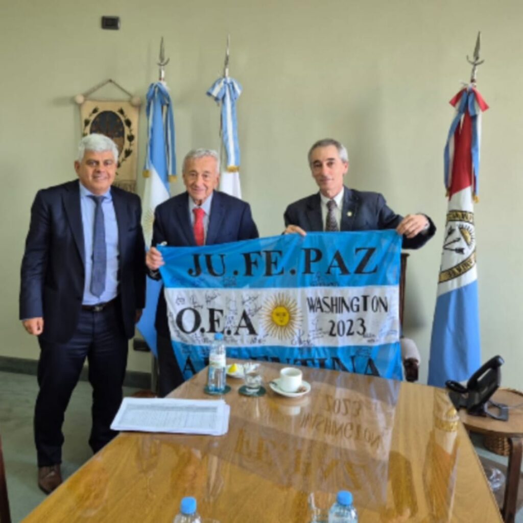Cómo ha pasado en todos lados y que además se ha transformado como un símbolo de camaradería, con mucho gusto y en forma entusiasta los integrantes de la Corte firmaron la bandera Argentina que también estuvo en la Organización de Estados Americanos OEA (Noviembre 2023)