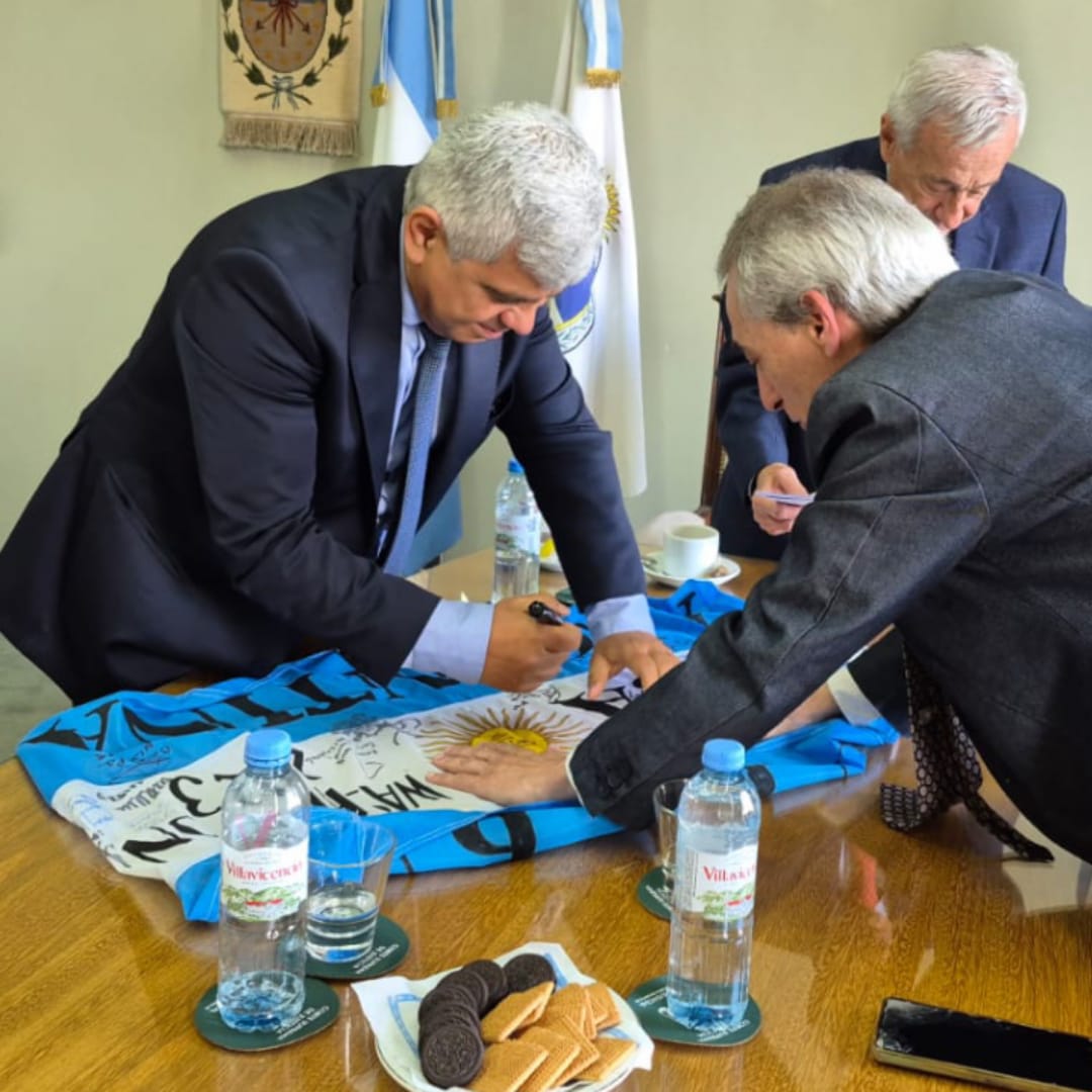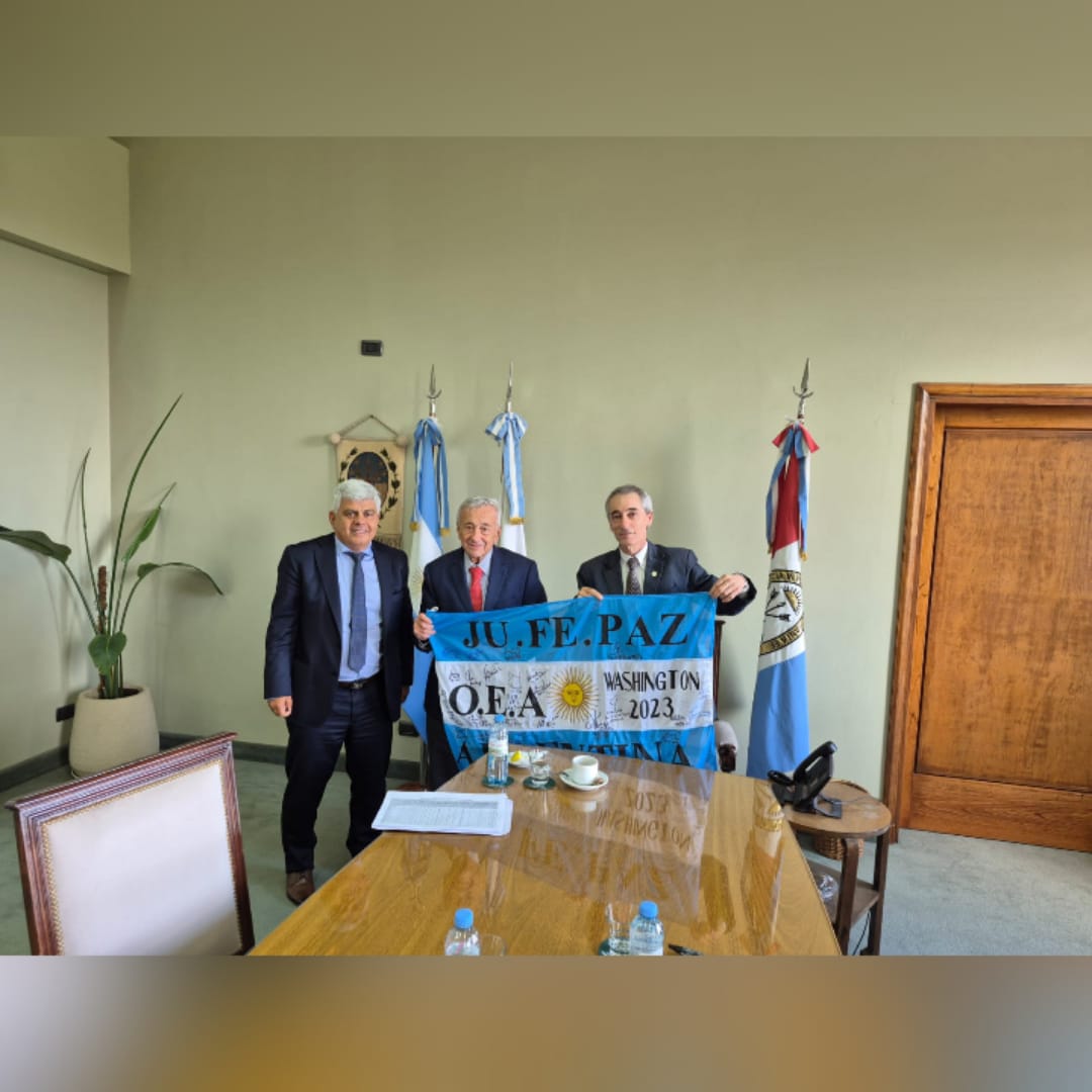 Cómo ha pasado en todos lados y que además se ha transformado como un símbolo de camaradería, con mucho gusto y en forma entusiasta los integrantes de la Corte firmaron la bandera Argentina que también estuvo en la Organización de Estados Americanos OEA (Noviembre 2023)