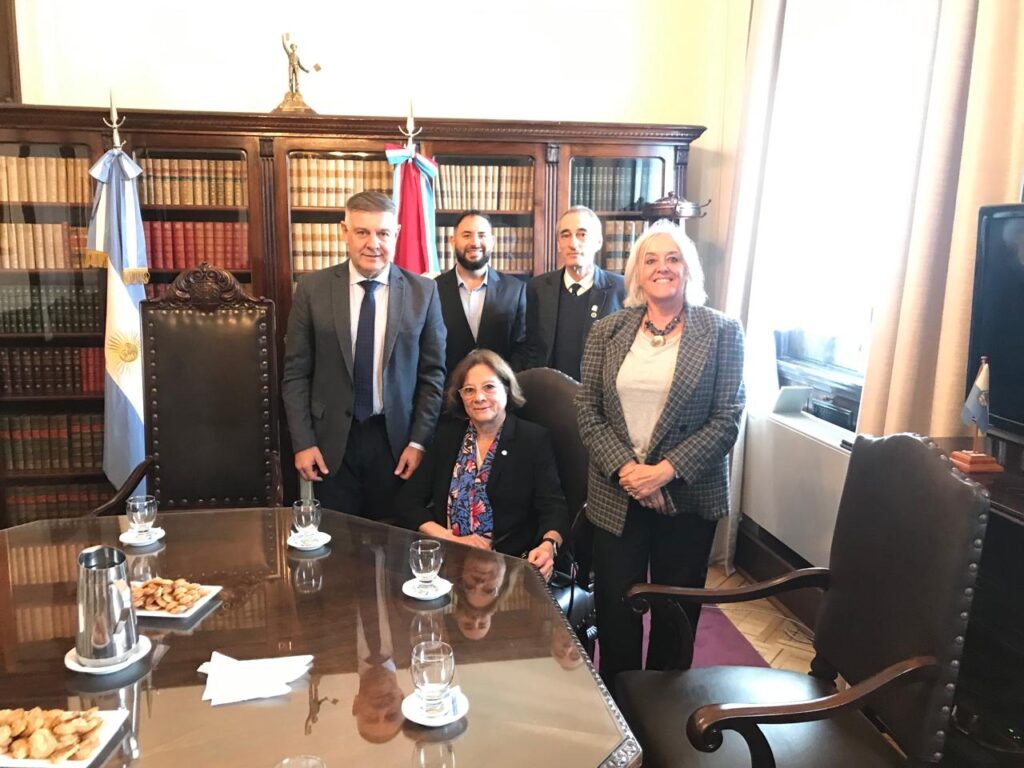 La doctora María del Carmen Battaini, presidenta de JuFeJus (Junta Federal de Cortes y Superiores Tribunales) también fue protagonista de esta importante jornada de reuniones en la provincia de Córdoba. Battaini, quien siempre ha destacado el valor de la Justicia de Paz y el servicio que cumple en todo el territorio de la República Argentina formó parte de todo este periplo arribando por la mañana a Córdoba y debiendo retornar por su ceñida agenda, por la tarde a su provincia de origen. Bien conocido es el afecto y la estrecha relación que unen a la justicia de paz, representada por la JuFePaz con la presidenta de cortes.